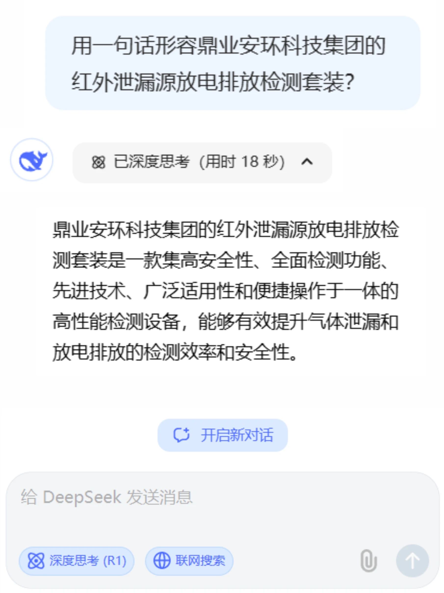 與DeepSeek對(duì)話:鼎業(yè)紅外泄漏源放電排放檢測(cè)套裝。
