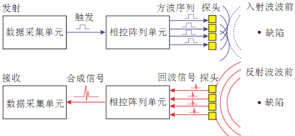 聲相控陣檢測技術基于相控陣波束合成原理,通過電子延時精準控制陣列換能器各壓電晶片的激勵時序,實現聲波相干疊加與動態聚焦。該技術憑借相位調控,可靈活改變聲束指向與聚焦深度,突破傳統超聲檢測的幾何局限,支持電子掃描和多模式檢測,大幅提升檢測分辨率與覆蓋范圍。其技術核心在于對陣列聲場的時空調制,需合理優化陣元間距與波長比等參數,以抑制柵瓣、優化聲場性能。