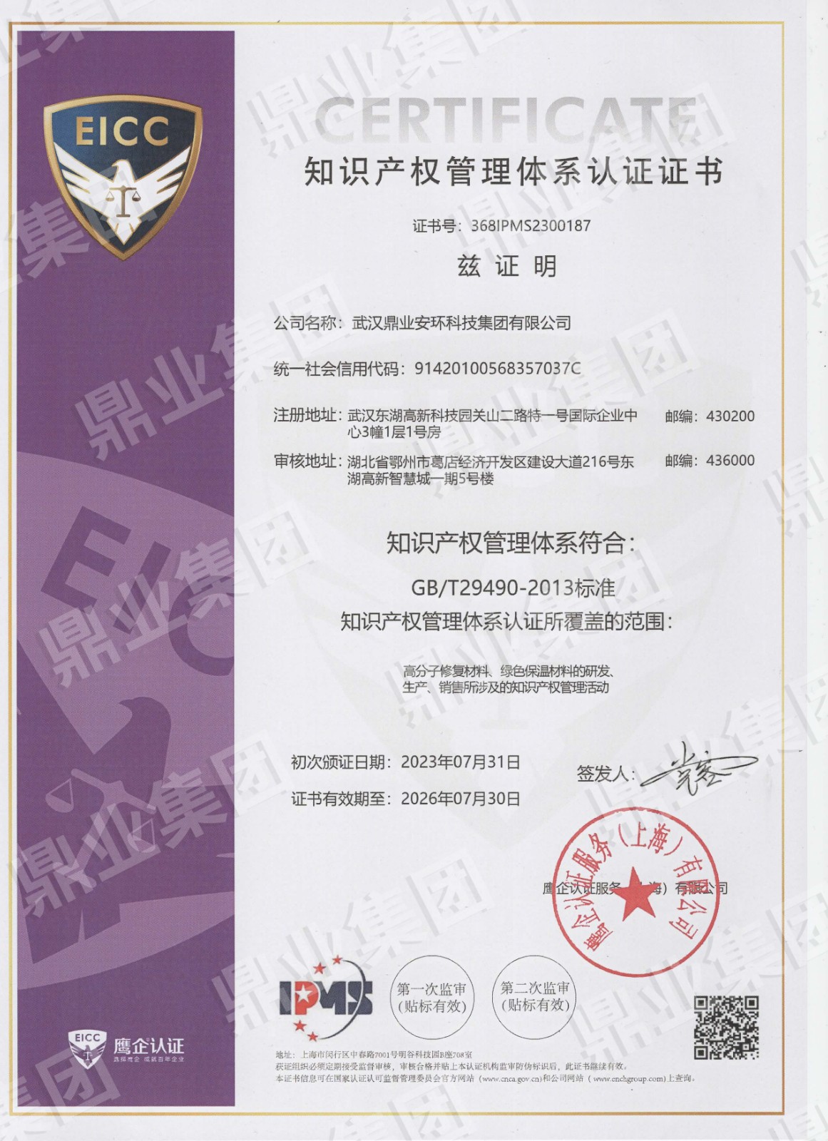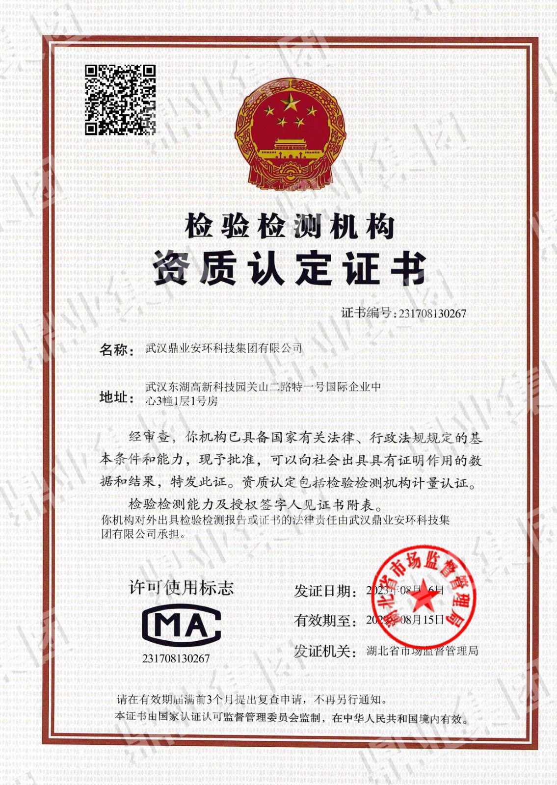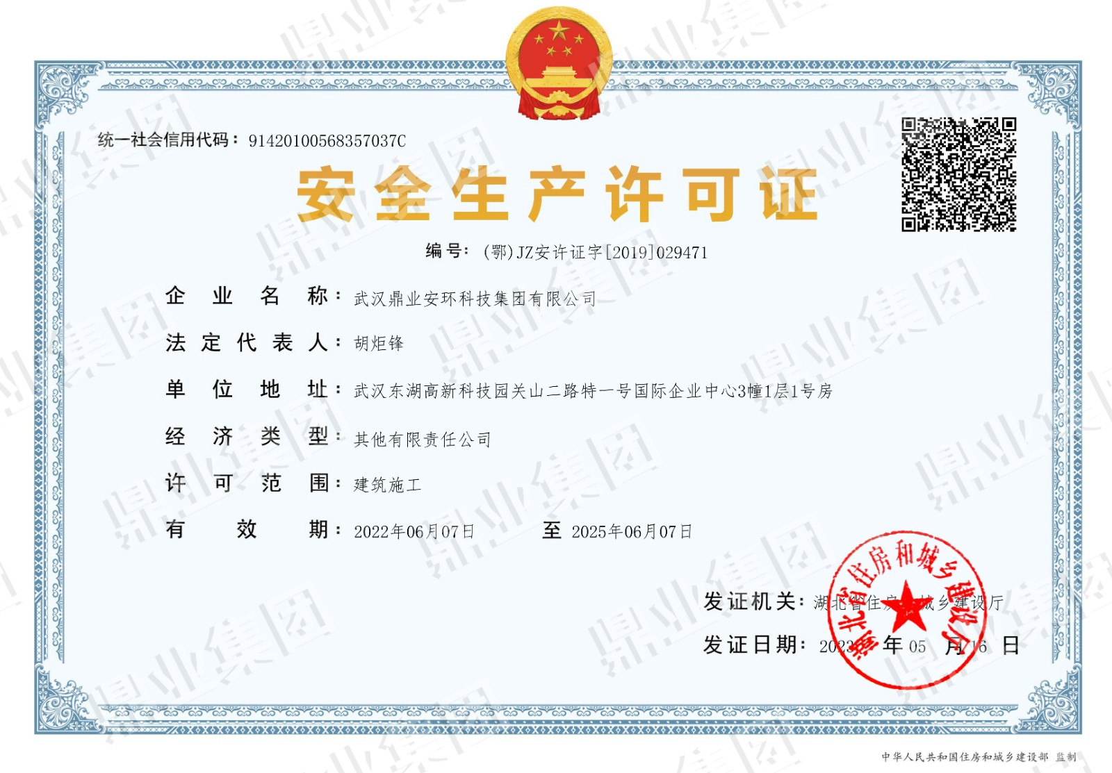 鼎業安環集團連續6年被評為武漢市瞪羚企業、高新技術企業,榮獲國家專精特新“小巨人“、“湖北金種子”、“湖北省制造業單項冠軍稱號”,武漢首批“雄鷹企業”,集團擁有158份專利和軟件著作權”。擁有環保工程專業承包二級證,安全生產許可證(二級資質工程項目承攬、施工勞務工程項目承攬),建筑業企業資質證,特種設備生產(壓力容器改造)許可證,防爆產品合格證。通過質量、環境、職業健康、安全管理體系(“QEOJ”管理體系)認證,安全生產標準化達標企業三級認證,檢驗檢測機構資質認證,知識產權管理體系認證,誠信管理體系認證,售后服務認證,社會責任管理體系認證,固廢、危廢、回收加工處理企業服務能力等級資質認證。